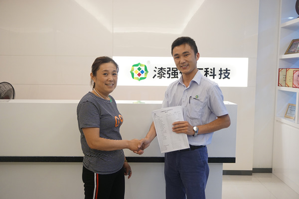 在短短的三天内,孙总便被漆强产品的质量以及服务态度所折服,在估算了一下用量后便和我们签订了合作协议并且下了十多万的单。这是对漆强产品的肯定,也是对漆强服务的信任。在往后的合作里,我们定必尽全力让孙总满意让孙总放心,绝不辜负客户的信任和认可。